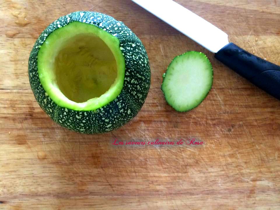 - Videz les courgettes avec un économe ou une cuillère, conservez la chaire